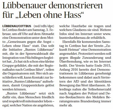 Demonstration "Leben ohne Hass", Cottbus | 3. Januar 2019